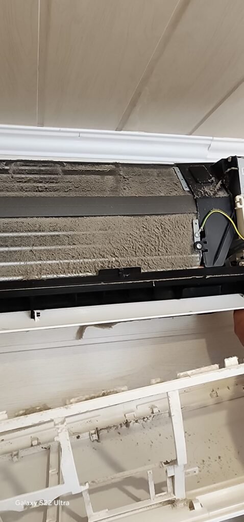 avec le temp, les filtres et l’intérieur de votre climatisation accumule poussières, bactéries et moisissures, cela peut entrainer : Mauvaises odeurs, air chargé en bactéries, perte de puissance, risque pour la santé. Exactement ce qui se passait chez cette cliente à Martigues
